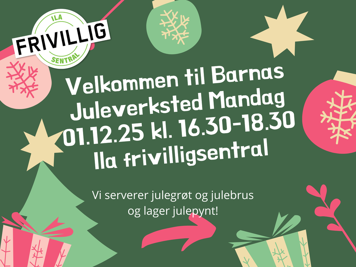 Vi lager julepynt, og det blir servert julegrøt og julebrus:) arrangementet er gratis og åpent for barn/unge i Ila og omegn.